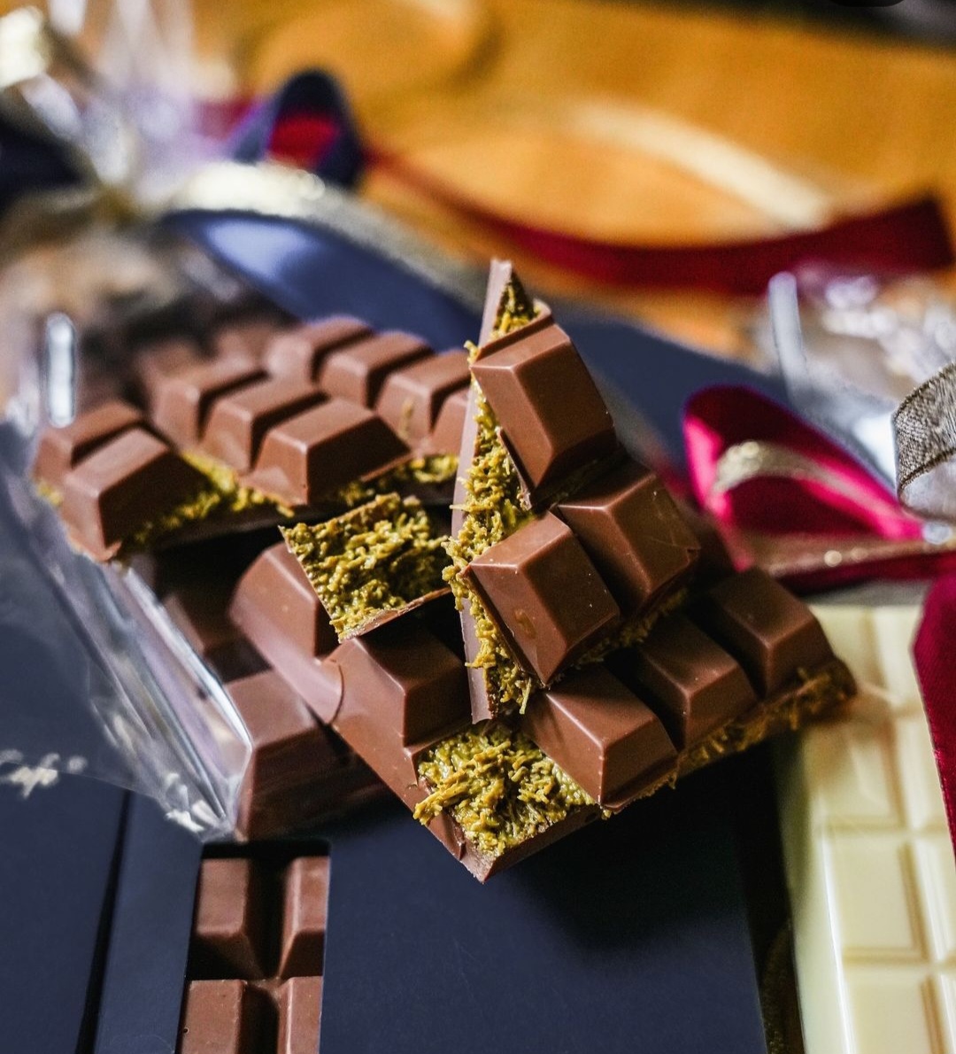 Dubajski deser wyróżnia się dzięki połączeniu różnych tekstur i smaków – chrupiącego nadzienia z pastą pistacjową oraz cieniutkiego ciasta kataifi, zamkniętych w delikatnej czekoladzie. Ta kompozycja zadowoli podniebienia nawet najbardziej wymagających smakoszy.