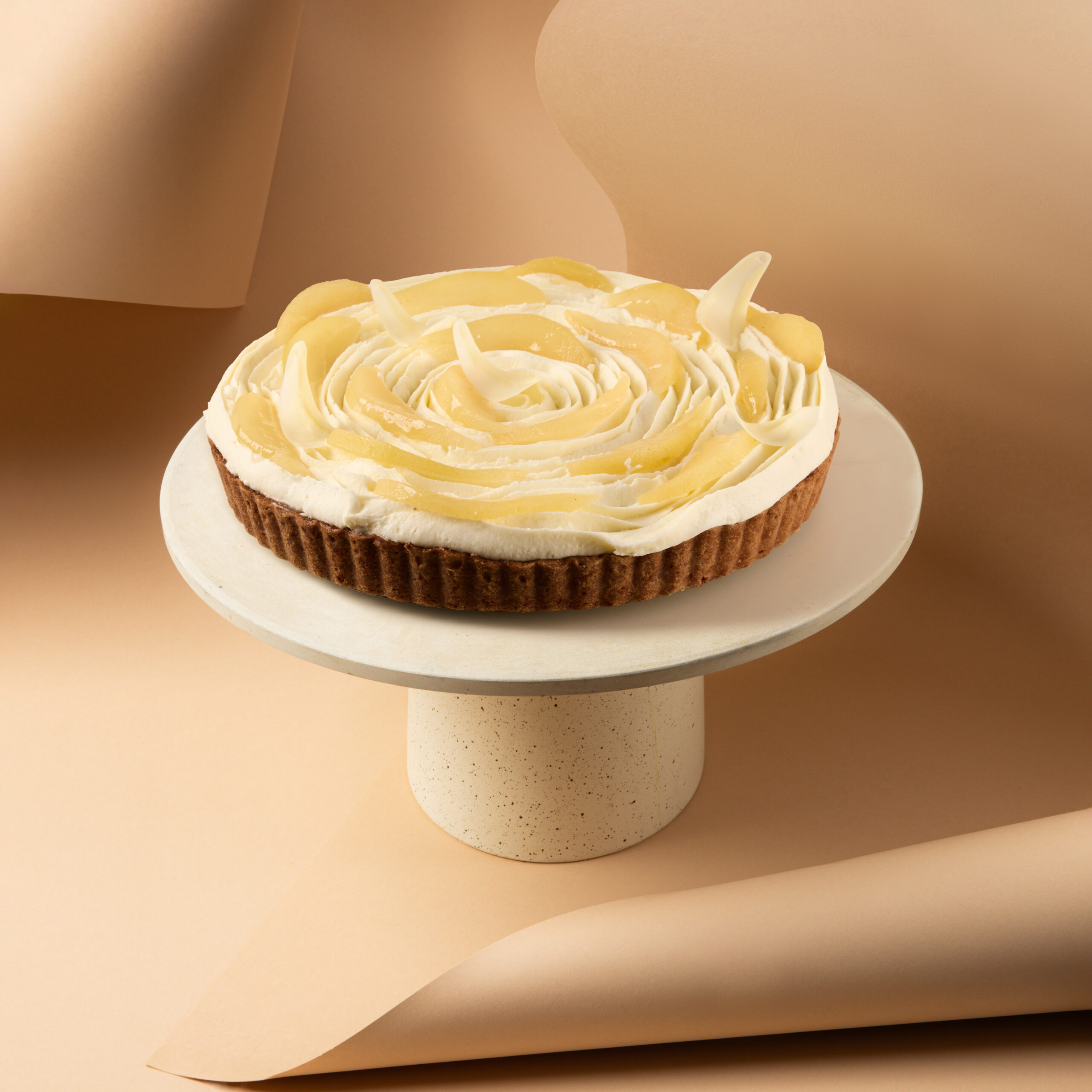 Całość wieńczy lekki mus jogurtowy, który przełamuje słodycz kremu i gruszek, dodając deserowi świeżości i niezwykłej harmonii. To tarta elegancka, zbalansowana, delikatnie wytrawna — idealna na jesień, zimowe spotkania i wszystkie momenty, w których chcesz podać coś wyjątkowego, a jednocześnie lekkiego.