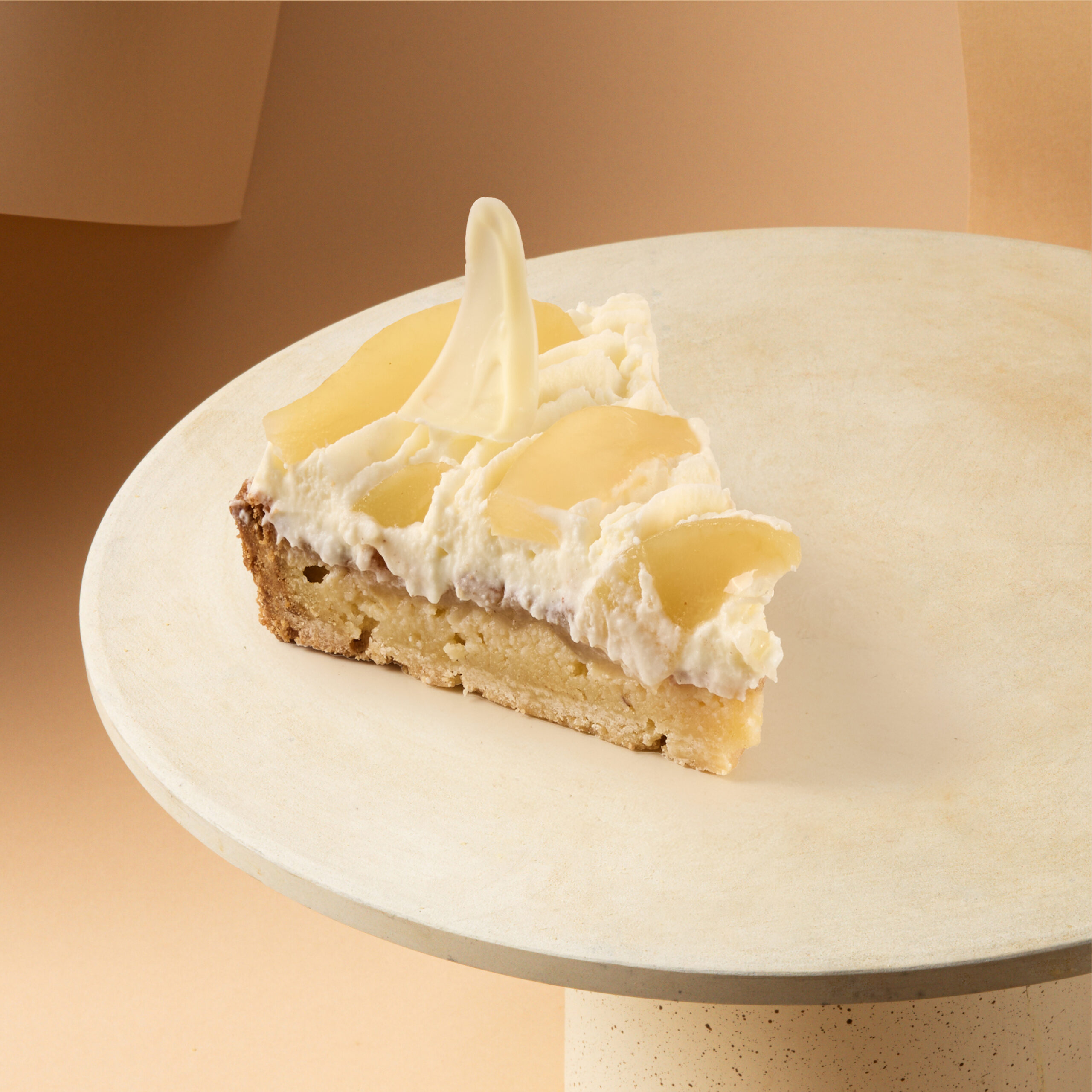 Tarta gruszkowa z kremem migdałowym i musem jogurtowym to deser, który łączy w sobie jesienną elegancję, delikatność i lekkość. Kruche, maślane ciasto stanowi idealną bazę dla aksamitnego kremu migdałowego o subtelnie orzechowym aromacie. Na wierzchu znajdują się soczyste, słodkie gruszki, które nadają tarcie sezonowego charakteru i naturalnej świeżości.